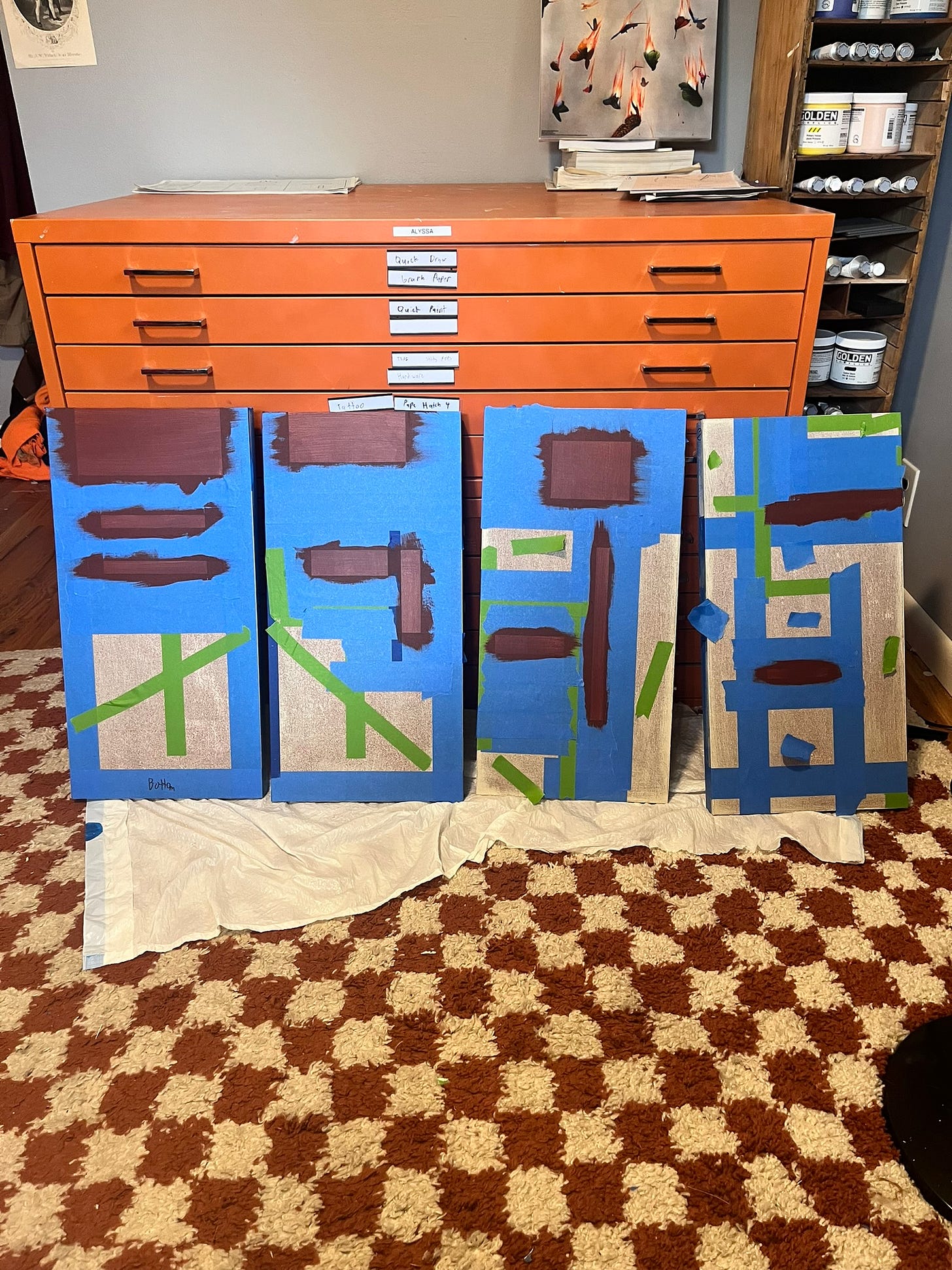 Once it all seems good, and all the tape is removed, I check that the boxes are still in the right place and all the colors are cohesive. Again, I can go back and start the whole thing or certain parts over, but it gets dicey. Gotta be decisive.