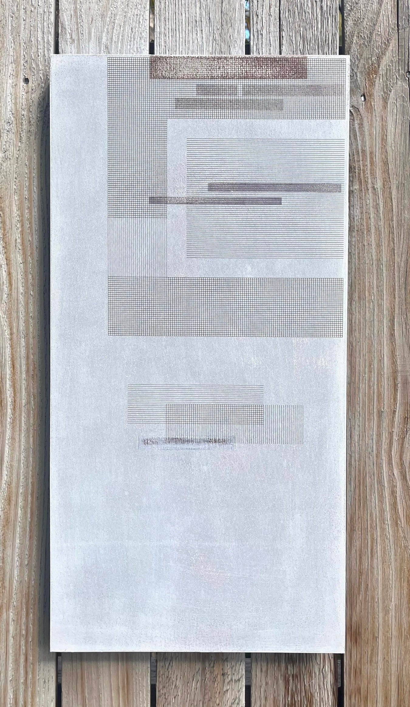 This part is finicky. First off, these boxes are specific: they need to be precisely measured in order to interact correctly with the printed forms down the line. Second, while I can kind of endlessly play with it, adding and subtracting more paint as long as I want, it eventually stops looking cohesive with the rest of the piece. Third, it’s a lot of back and forth between my office and the garage, the sanding is still physically tough, it can get pretty tiring. When I broke my foot last year I mostly stopped making these paintings because this step was so physically active.